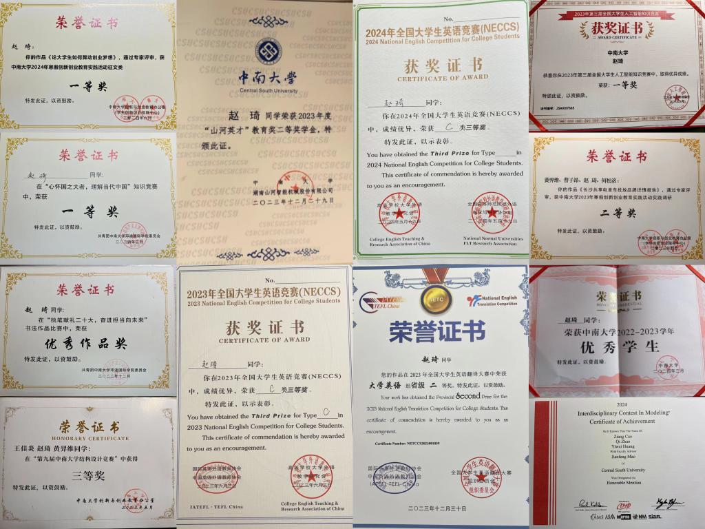 赵琦,男,中共预备党员,汉族,江苏扬州人,邓迪国际学院土木工程专业2202班学生。入学以来加权成绩专业2/78(2.56%),2023-2024学年综测成绩专业1/78(1.28%)。曾获国家奖学金、本科生优秀学生标兵、山河英才教育二等奖学金、中南大学一等奖学金、中南大学优秀学生等荣誉。